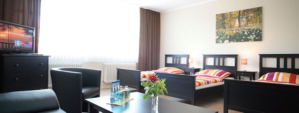 3 Einzelbetten | TV | Kleiderschrank | gemütliche Sitzgelegenheit