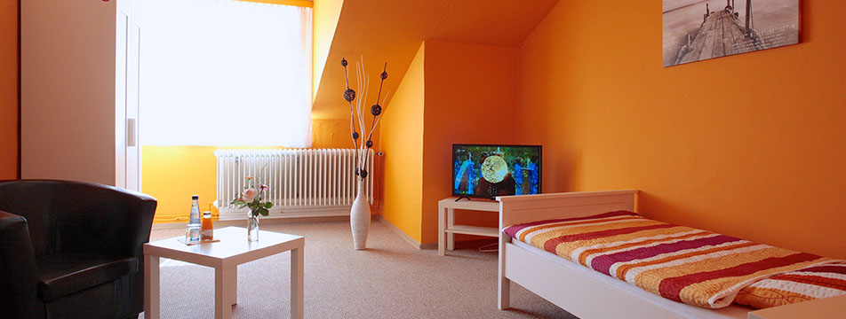 Einzelbett | TV | großzügiger Kleiderschrank | Sitzgelegenheit