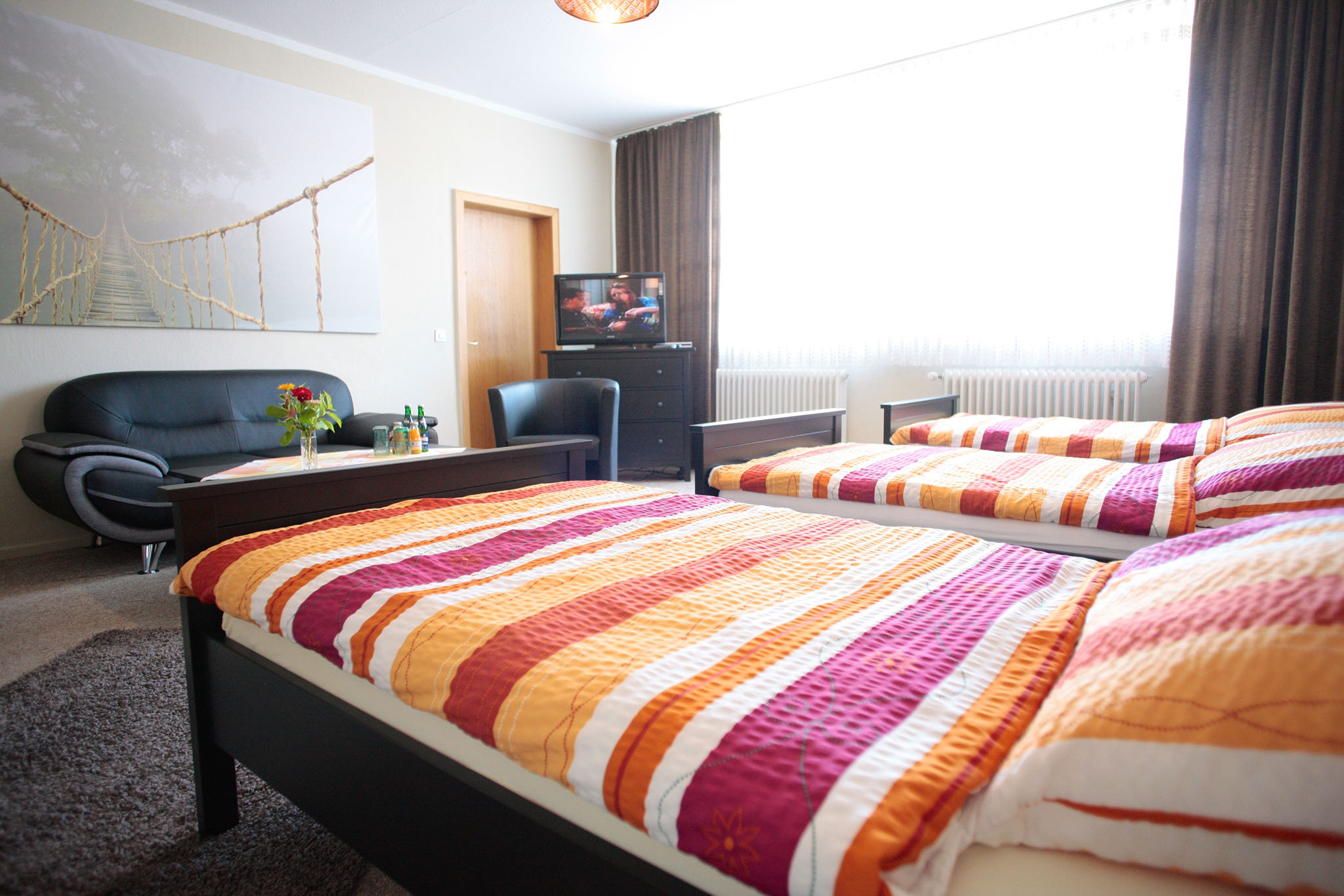 3 Einzelbetten | TV | Kleiderschrank | gemüt-liche Sitzgelegenheit | WLAN | Bad/WC auf dem Flur